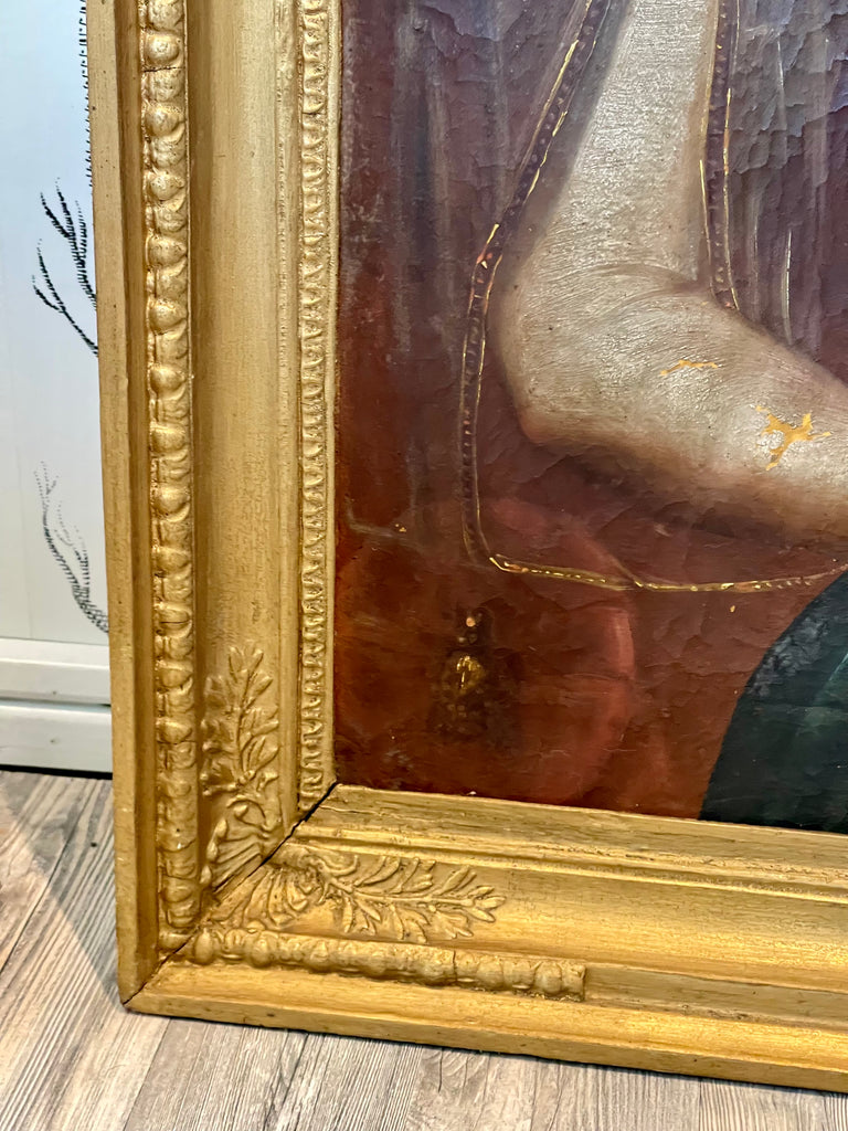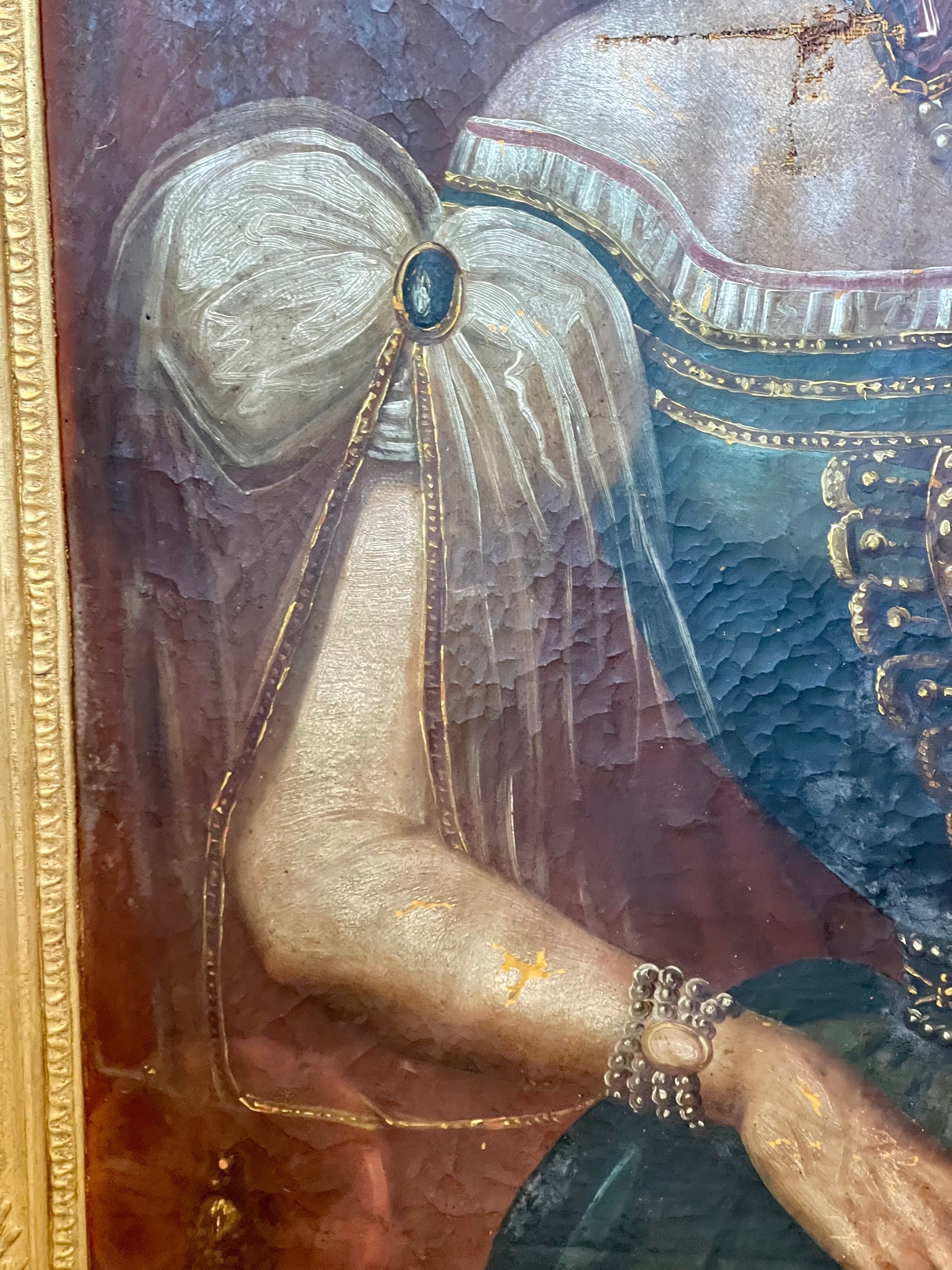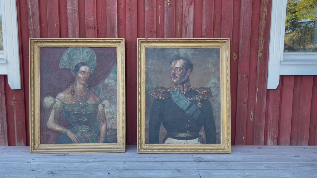 Stor, oljemålning av tsar Nikolaj den första. Se noggrant på bilderna för att få en uppfattning om skicket. Det är en mycket gammal tavla så den har sina spår av tidens tand. Tavlan är uppskattningsvis från 1800-talets mitt. Den är målad av en person som använt Franz Krügers målning som förlaga.