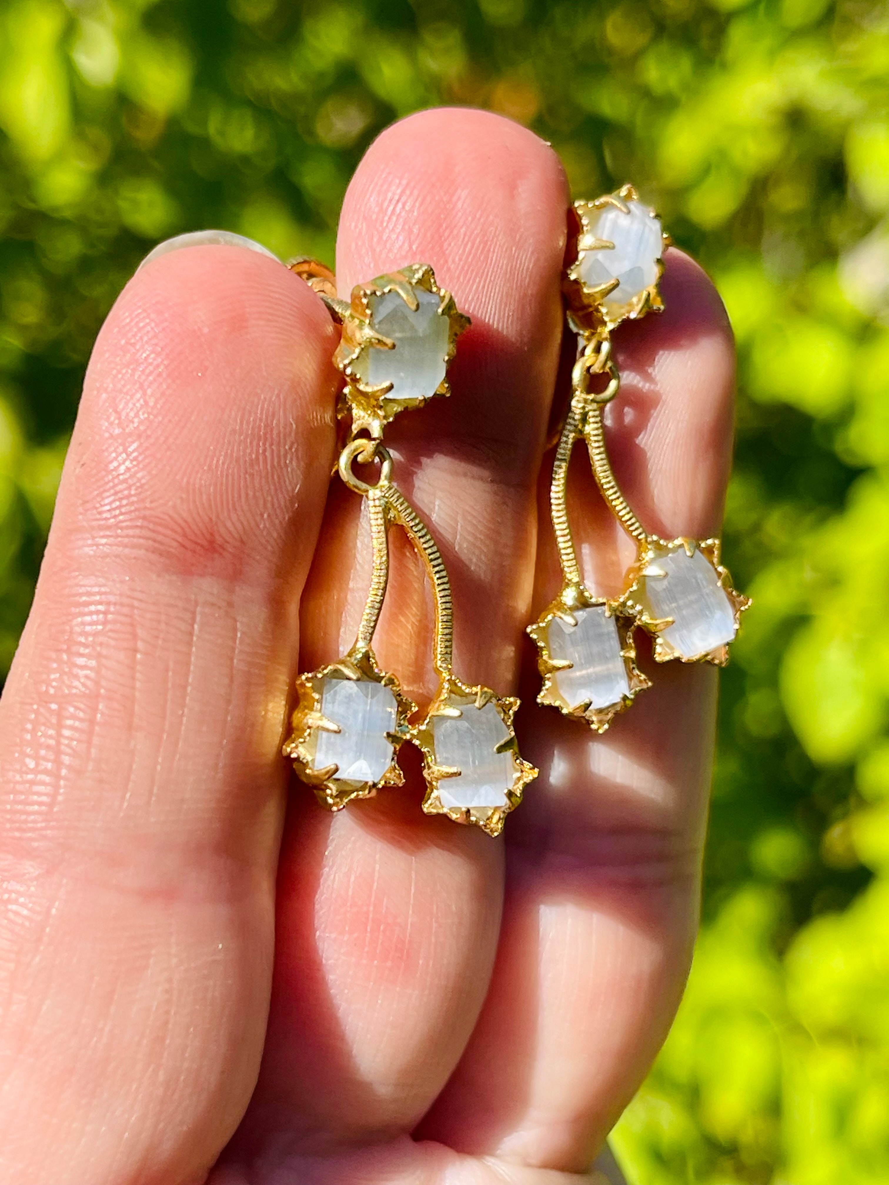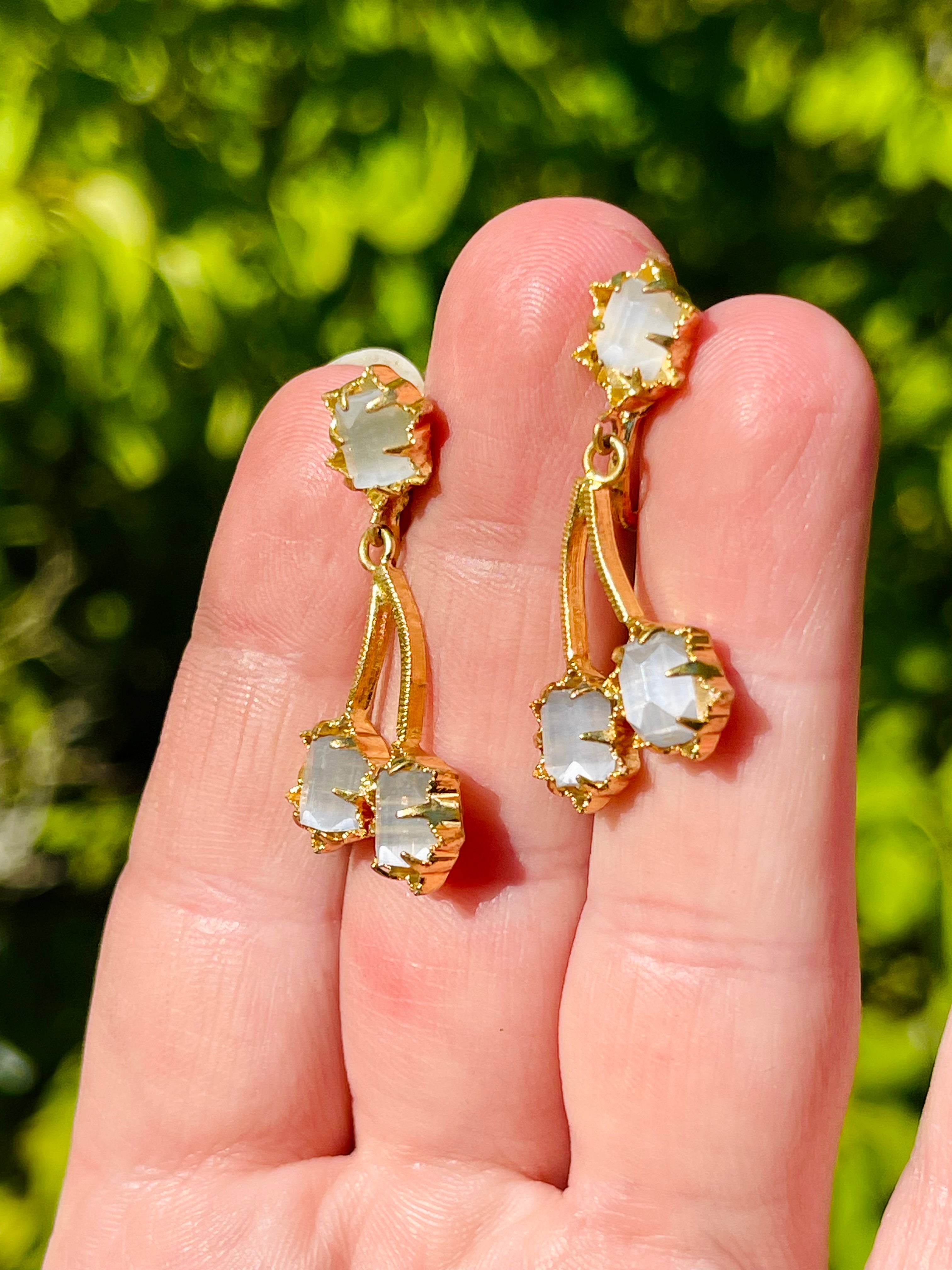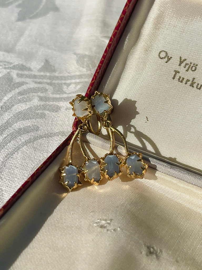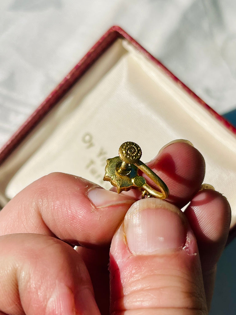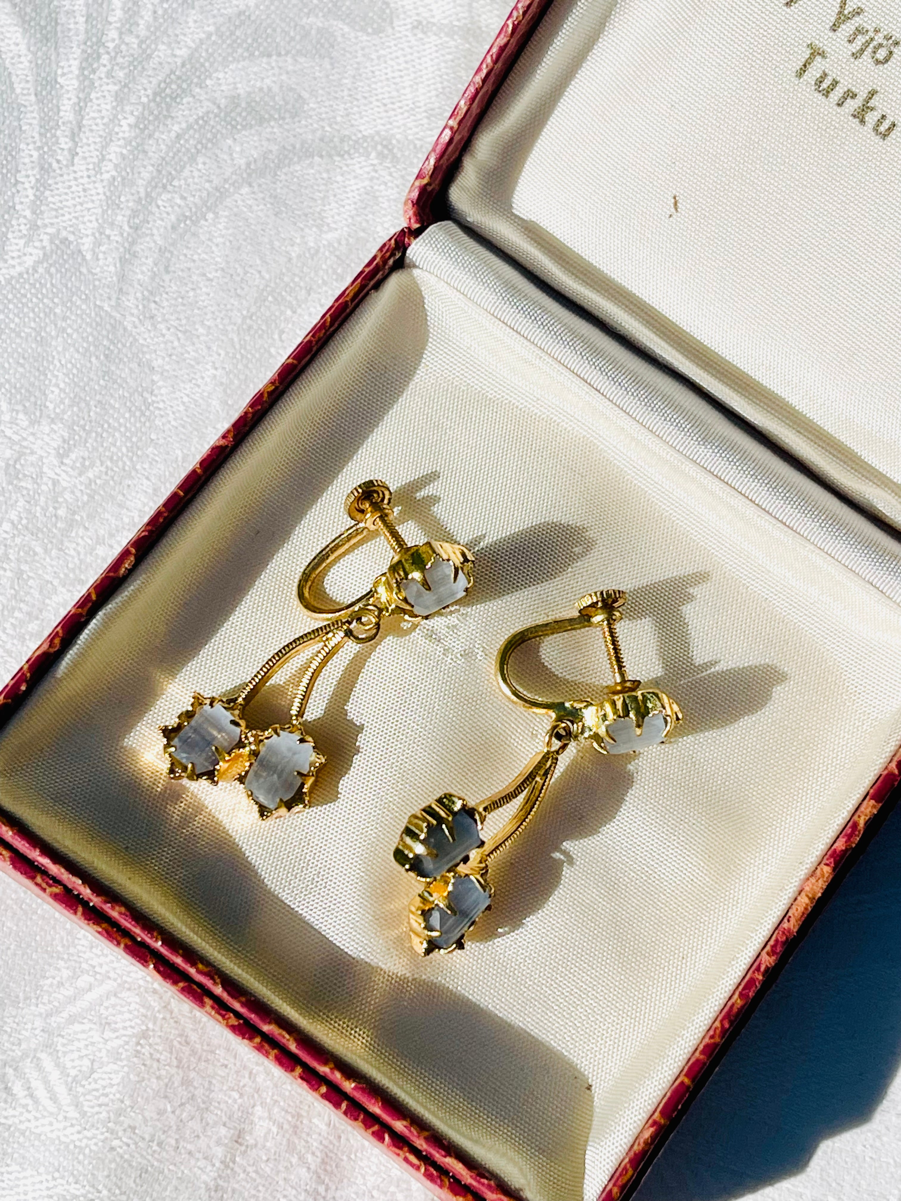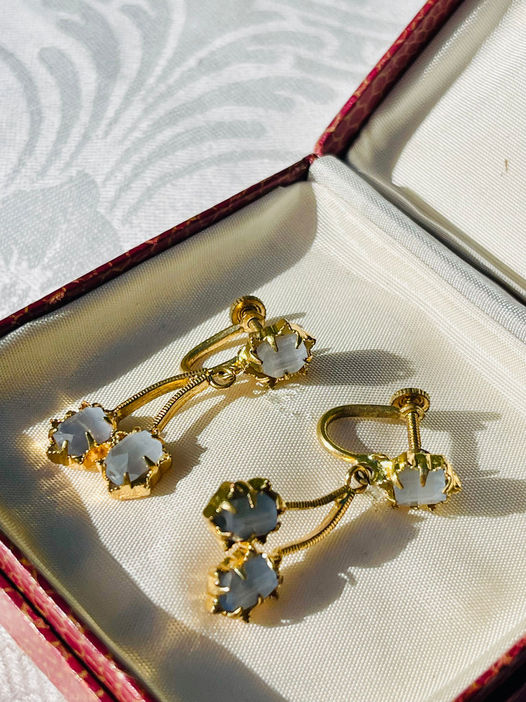 Vackra vintage örhängen i fint skick. Guldfärgat material, fästs i örat med en skruvmekanism.